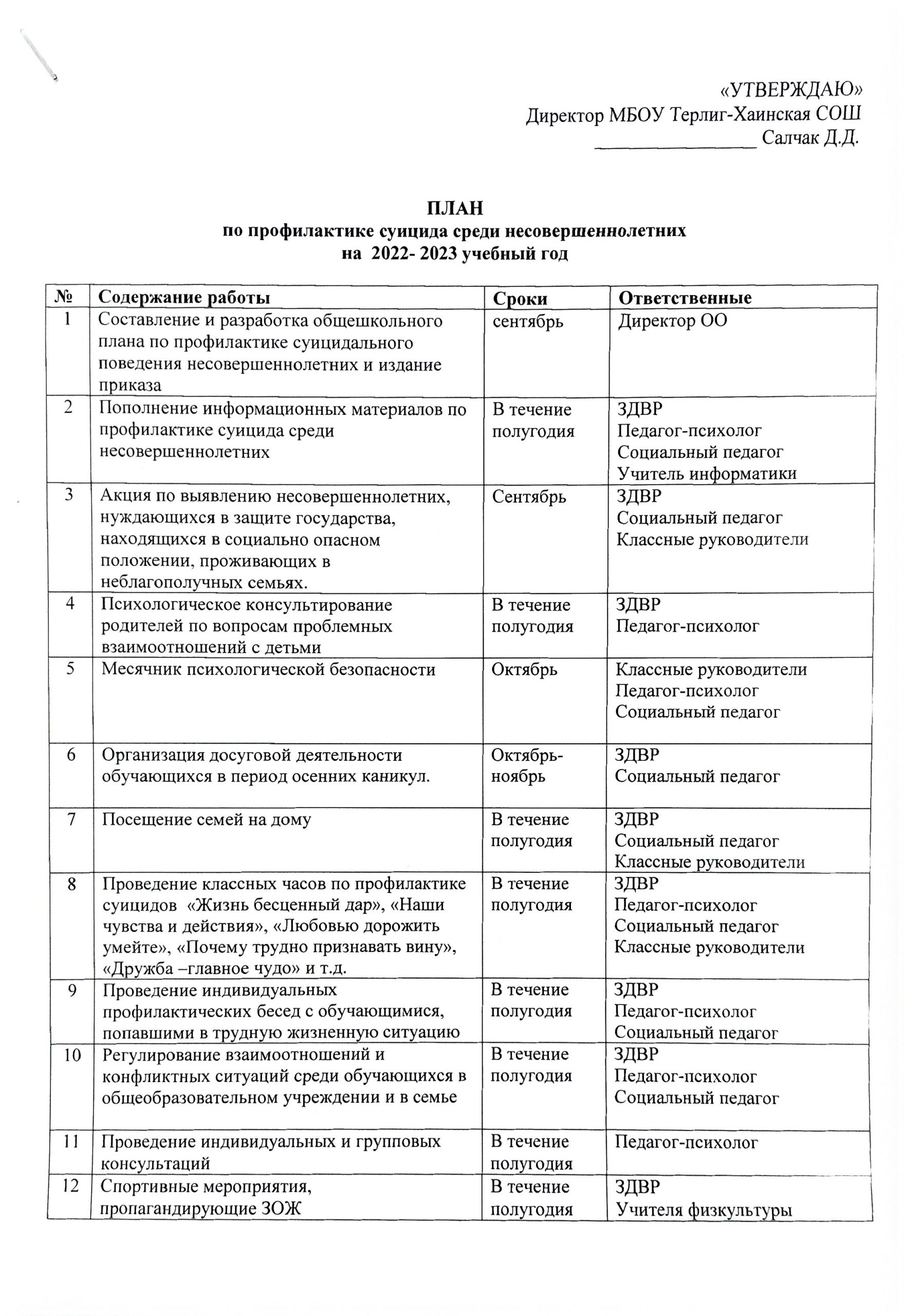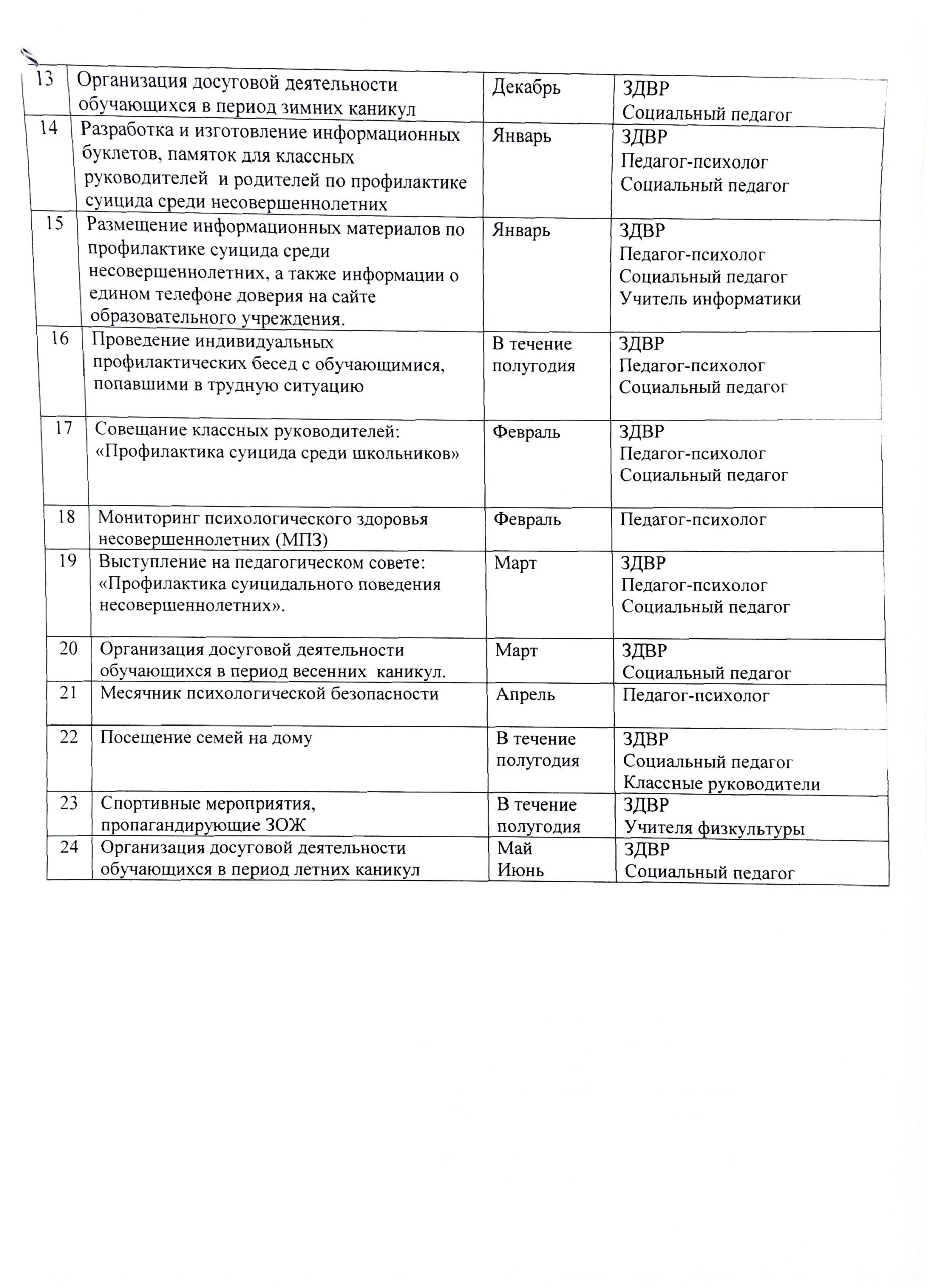 Программа по воспитательной работе и программа по профилактике правонарушений Программа воспитания за 2024-2025 учебный годСкачать План совместных мероприятий с МВД на 2024-2025 учебный годСкачать Профилактика правонарушений в школеСкачать График совета профилактики на 2022-2023 уч.годСкачать План работы школьной службы примирения на 2022-2023 уч.год 1 стр Скачать План работы школьной службы примирения на 2022-2023 уч.год 2 стр Скачать План мероприятий по профилактике употребления ПАВ на 2022-2023 уч.год 1 стрСкачать План мероприятий по профилактике употребления ПАВ на 2022-2023 уч.год 2 стр Скачать План по профилактике суицида среди несовершеннолетних на 2022-2023 уч.год 1 стрСкачать План по профилактике суицида среди несовершеннолетних на 2022-2023 уч.год 2 стр Скачать План мероприятий осенних каникул на 2023-2024 учебный годСкачать График родительского патруля во время осенних каникул с 28.10.2023 по 05.11.2023 гСкачать Инструктаж для родителейСкачать Памятка Безопасность летомСкачать Памятка правила безопасностиСкачать Памятка по требованиям пожарной безопасностиСкачать Памятка по противопожарной безопасностиСкачать Памятка для родителей про безопасность на водоемахСкачать Памятка про водную безопасностьСкачать Памятка для родителей (законных представителей)Скачать Памятка «Родители позаботьтесь о безопасности своего ребенка!»Скачать Анализ ВР за 2022-2023 учебный год Годовой-отчет-анализ-ВР-2022-2023-учебный-годСкачать Форма отчета о ходе реализации программы воспитания за учебный годСкачать