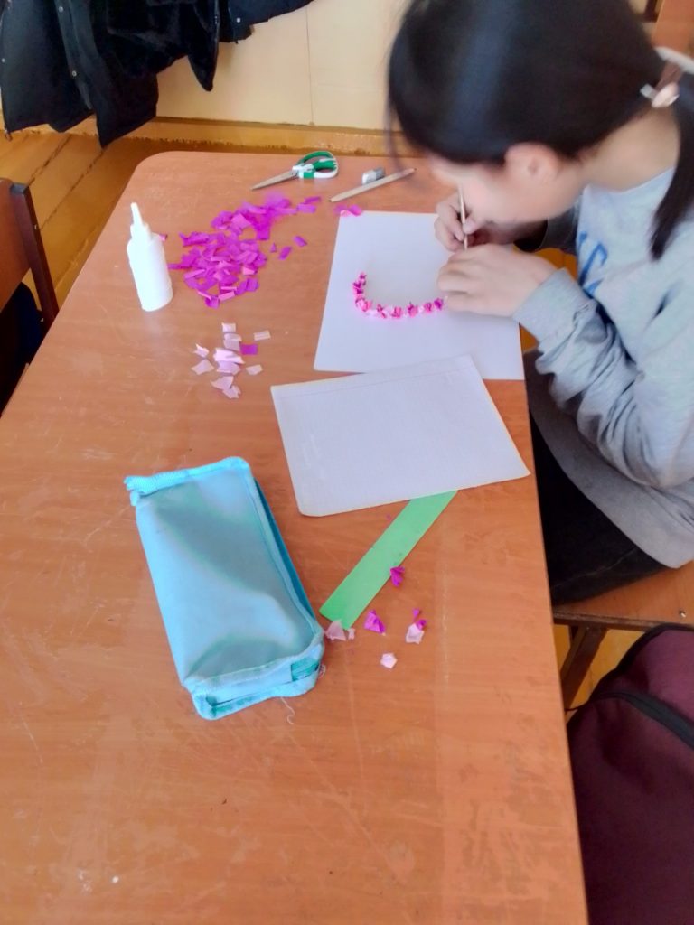 В рамках МПЗ в школе педагогом-психологом проведена арт-терапия «Торцевание» в 5-11 классах. Охват: 38 человек